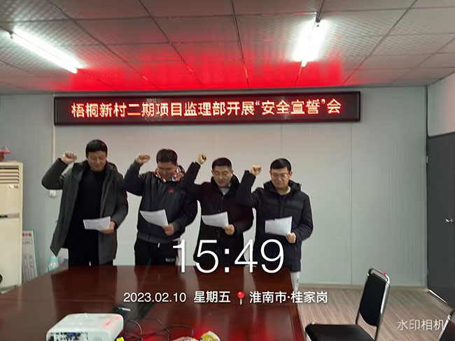 為進一步提升員工責任感、使命感、榮譽感,展現企業良好形象。公司決定,自2023年2月1日起,在已開工項目每月舉行一次安全宣誓。各項目部在每月上班的第一天班前舉行,由分管安全負責人、項目總監、總代負責落實。