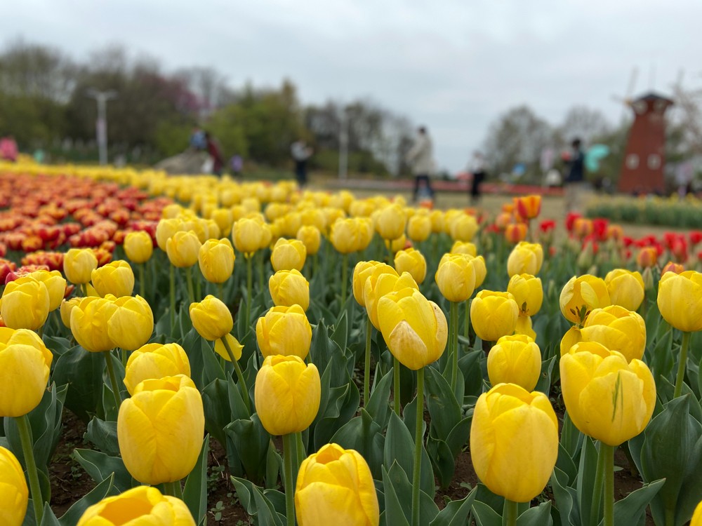 效果:用大面積顏色來營造花海的氛圍感,利用不用花色花形狀,組合出成片的花帶,搭配出層次感。