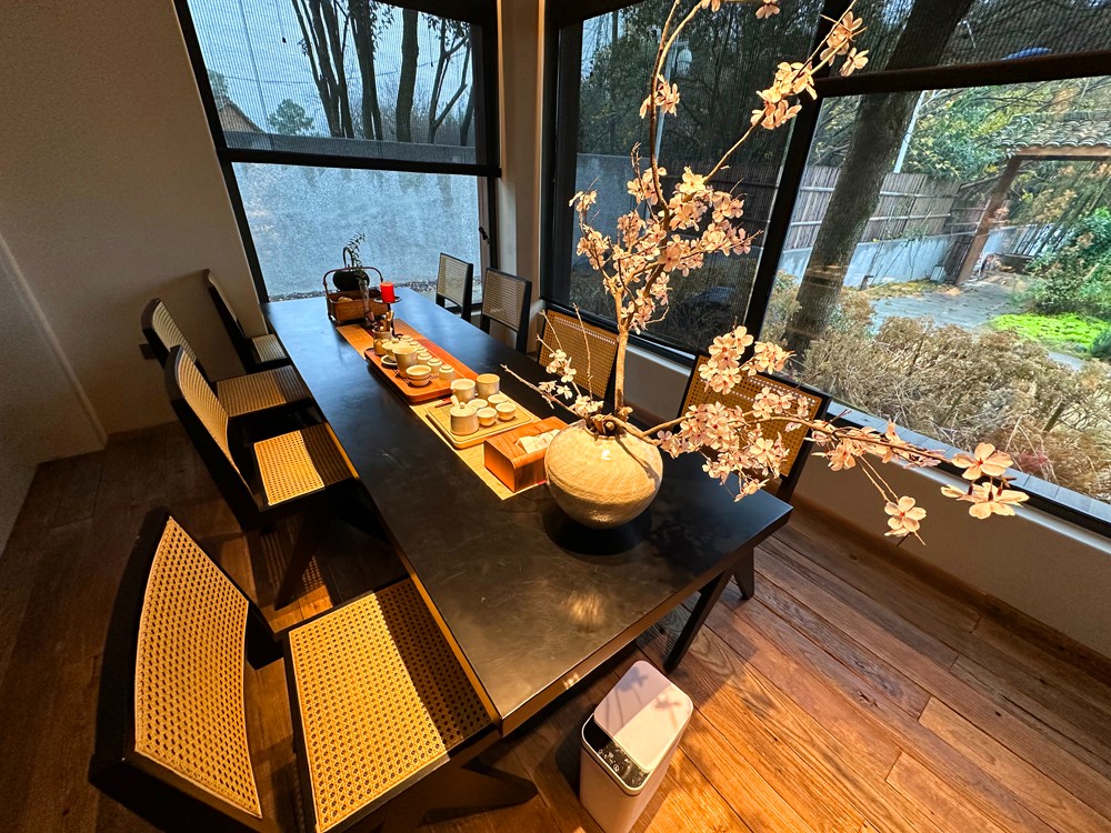 民宿擁有濃厚的文化底蘊,周邊青山環繞,兼具市井煙火氣息和藝術氛圍,傳承中國經典美學,與周圍的自然環境融為一體,適合家庭游、親子游、情侶散心、公司團建、生日派對等。