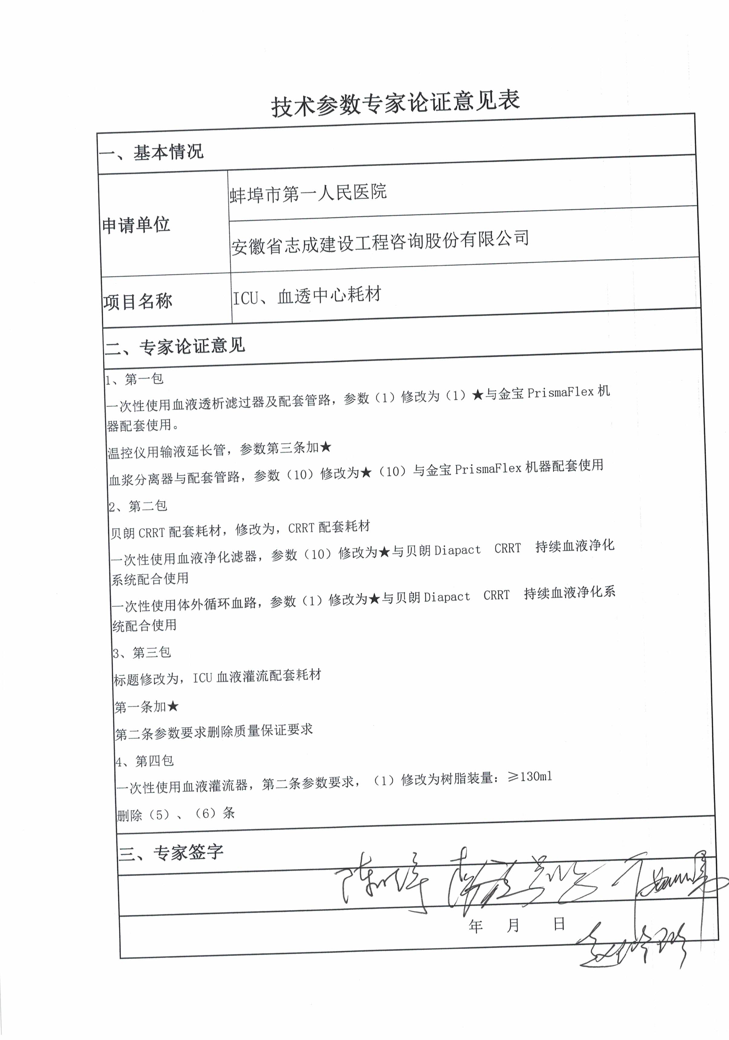 蚌埠市第一人民醫(yī)院ICU、血透中心耗材采購項(xiàng)目需求報告及反饋意見.doc