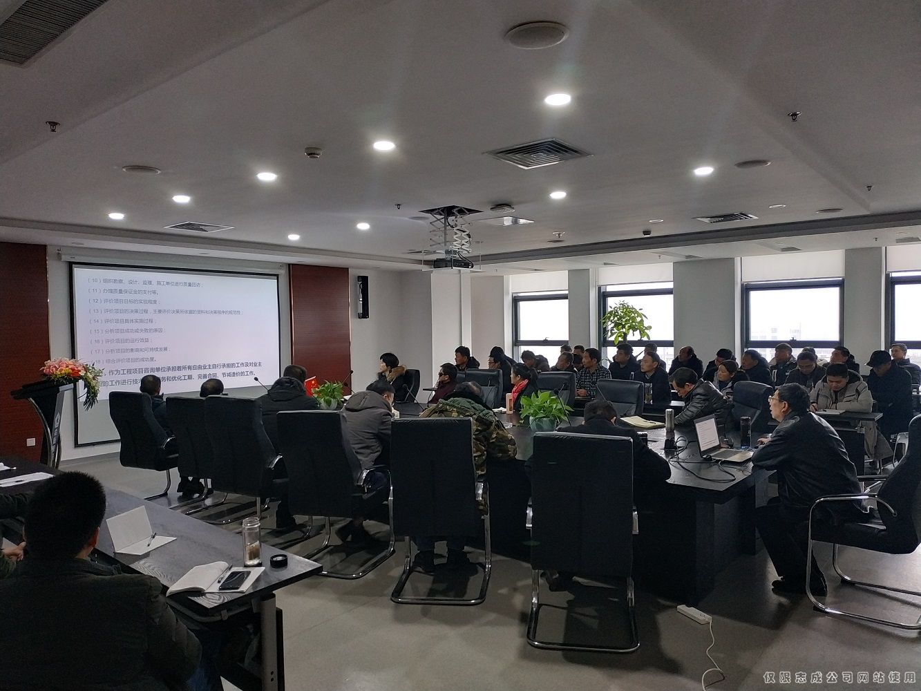 常務副總陶登鳴的講課條理清晰,時常舉一些事例,使道理深入淺出。針對全過程工程項目管理六大工作環境、全過程工程項目管理的管理風險、我國投資過程中存在的問題、投資控制曲線及投資風險的規避、我公司全過程項目管理和全過程工作咨詢的特色服務等方面,與參會人員進行了一系列的探討。長達數小時的講座,聽起來一點不覺得累,反而是一種享受。